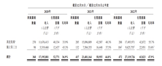 根据招股文件,万达商管为中国最大的商业运营服务提供商,在管建筑面积在中国超过第二名至第十名的总和,储备项目建筑面积也在中国排名第一,截至2022年底,万达商管也是中国唯一向独立第三方大规模输出管理的商业运营公司,管理的独立第三方商业广场数量全国排名第一。