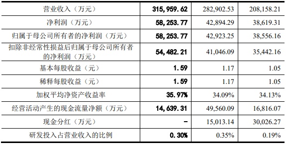 财务方面,于2020年、2021年、2022年,公司实现营业收入分别为20.82亿元、28.29亿元、31.6亿元,期内,公司实现净利润分别为3.86亿元、4.29亿元、5.83亿元。
