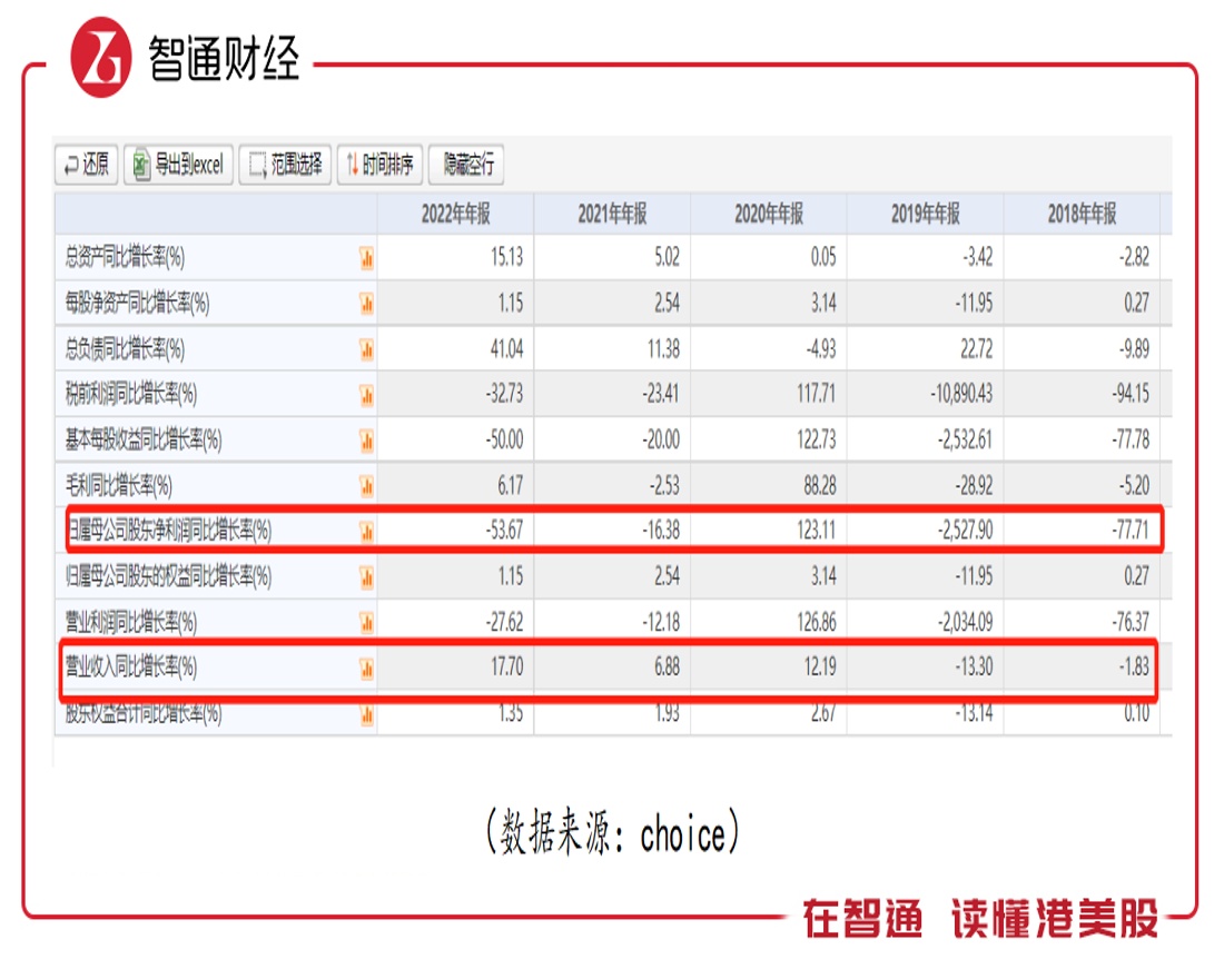而拉长时间线来看,2018年至2022年,该公司营收同比增长率分别为-1.83%、-13.30%、12.19%、6.88%、17.70%;归母净利润同比增长率分别为-77.71%、-2527.90%、126.86%、-12.18%、-27.62%,核心财务数据皆表现较为波动。