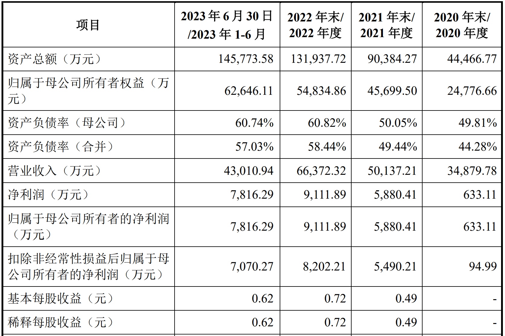 财务方面,于2020年度、2021年度、2022年度及2023年上半年,京仪装备实现营业收入分别约为3.49亿元、5.01亿元、6.64亿元及4.3亿元人民币。公司净利润分别约为633.11万元、5880.41万元、9111.89万元及7816.29万元人民币。