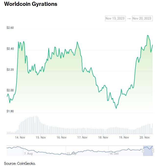 Sam Altman联合创立的一个项目的数字代币“世界币”(Worldcoin)最近成为加密领域最不稳定的代币之一,因为他被OpenAI解雇和可能复职的传奇故事震惊了商界。