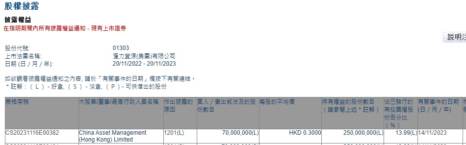 智通财经APP获悉,香港联交所最新资料显示,11月14日,China Asset Management (Hong Kong)