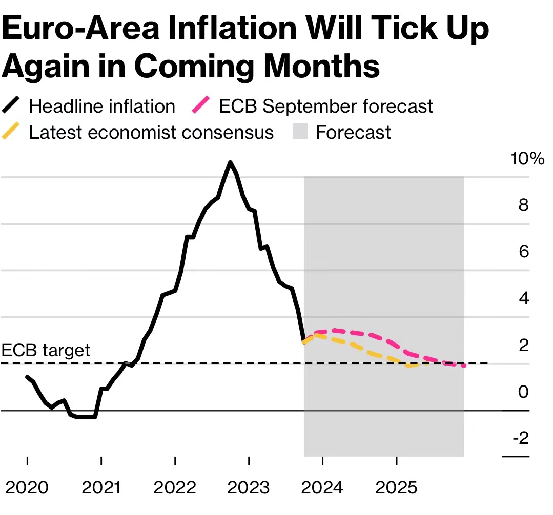 上个月,欧洲央行在其紧缩周期中首次维持利率不变,同时警告说,他们必须在“足够的时间”内保持利率不变,以使通胀回到2%的目标。一些官员表示,这排除了明年上半年采取降息行动的可能性。