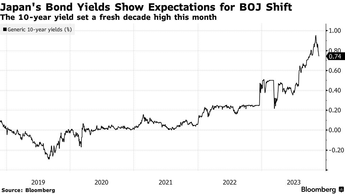 由于通胀率持续超过2%的目标,市场预计日本央行明年将退出其超宽松货币政策。此前,日本央行已经放松了其收益率曲线控制(YCC)政策,将基准十年期日本国债收益率推高至10年来的最高水平。
