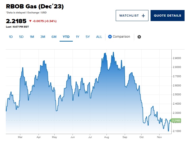 de Haan表示,目前有超过6.5万个加油站以每加仑2.99美元或更低的价格出售汽油,另外五个州的平均价格可能在感恩节前低于每加仑3美元。