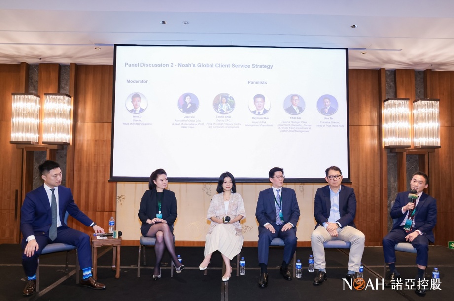圆桌讨论环节,诺亚控股以及歌斐国际核心高管团队分别就合规原则、配置策略、风险管理、机构拓展分享了诺亚极具竞争力的全球产品线和服务战略,在正确的时间为客户提供适时产品和服务。诺亚的全球化进程不仅仅是走向世界布局全球,也让更多世界的投资人看向中国,将中国的投资机会分享于全球华人。