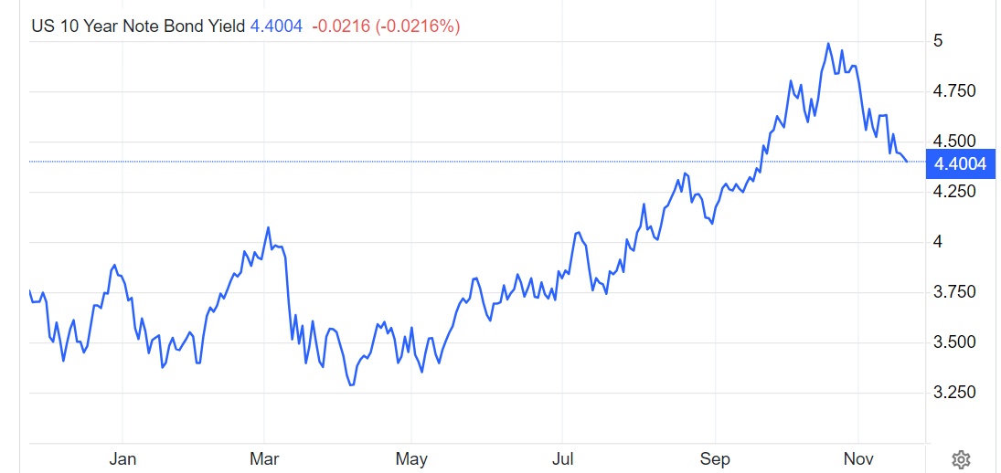 优步当前市值约为1130亿美元,是今年进入可转换债券市场的最大规模上市公司。它的最新举措利用了最近美债收益率急剧下滑,促使锚定美债收益率的债券市场融资利率下降带来的机遇,因为市场越来越相信美联储开启的一代人以来最激进加息周期已经结束。有着“全球资产定价之锚”称号的10年期美债收益率从10月份曾创下的5.02%这一2007年以来新高,跌至截至周一美股收盘时的4.40%附近。