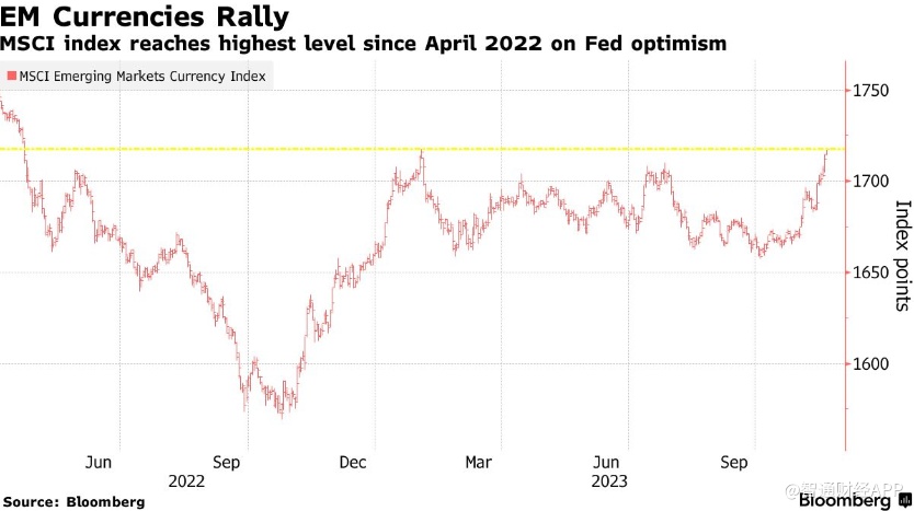 MSCI新兴市场货币指数升至2022年4月以来的最高水平