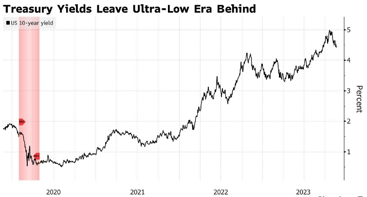 美国国债即将结束长达六个月的跌势。10年期美国国债收益率自2007年10月以来首次触及5%,上周一度跌至4.4%以下。本轮反弹意味着,美国国债有机会避免史无前例的连续第三年下跌。