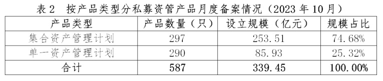 从产品类型看,10月备案的集合资产管理计划设立规模占比高于单一资管计划。