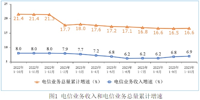 电信业务量收均实现小幅提升。1—10月份,电信业务收入累计完成14168亿元,同比增长6.9%,增速较前三季度提升0.1个百分点。按照上年不变价计算的电信业务总量同比增长16.6%。
