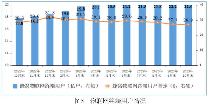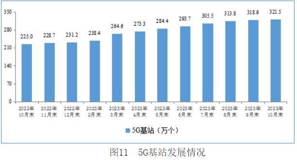 5G网络建设稳步推进。截至10月末,5G基站总数达321.5万个,占移动基站总数的28.1%。