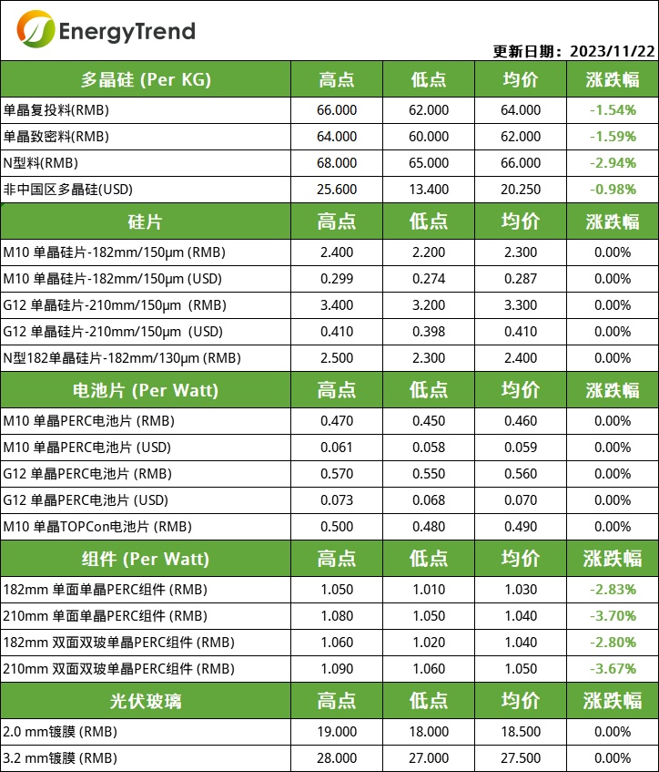 本周M10硅片主流成交价格为2.3元/片,G12主流成交价格为3.3元/片,N型182单晶硅片人民币价格,最新报价为2.4元/片。