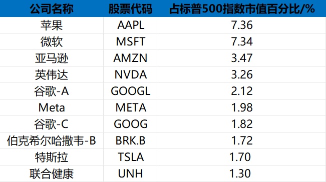 总的来说,市值排名前十的公司占标普500指数投资组合的32.07%。