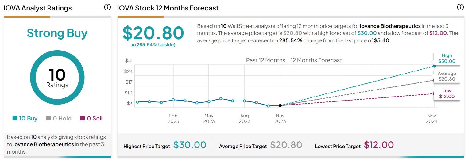 总体而言,机构汇编的华尔街分析师评级数据显示,Iovance获得了10位华尔街分析师一致肯定的“强烈买入”评级,而华尔街的这种一致乐观情绪往往将激起二级市场投资者的强烈买入兴趣。该股目前价位为5.395美元,20.80美元的分析师平均目标价意味着该股未来一年的上涨潜力超过300%。