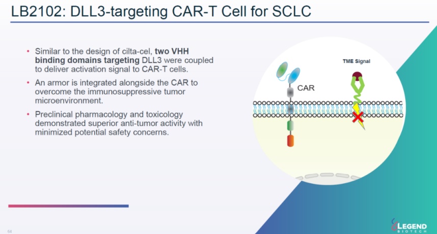 这次与诺华官宣合作的重要产品就是传奇生物尚处在I期临床的自体CAR-T细胞疗法LB2102以及其他针对Delta-like配体蛋白3(DLL3)的潜在CAR-T细胞疗法。
