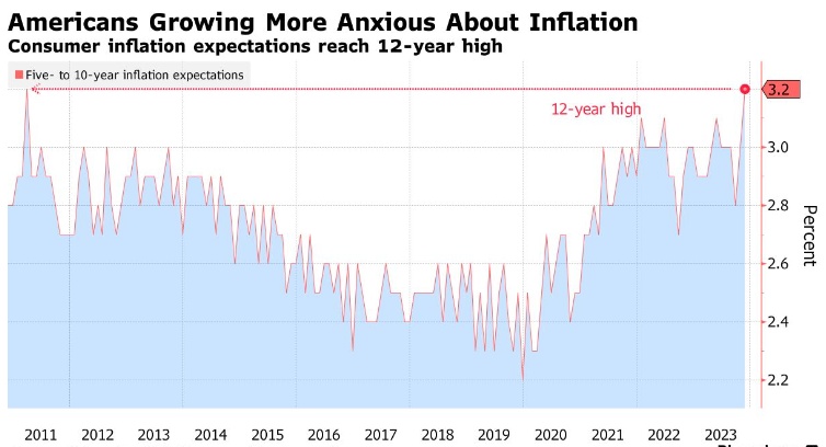 Drossos指出,收益率的下降并没有真正改变商业、工业和消费贷款的放贷水平。更高的利率正在打击消费者的信心,根据密歇根大学11月份的数据,消费者的长期通胀预期目前处于2011年以来的最高水平。美国信用卡拖欠率上升也给家庭带来了痛苦。