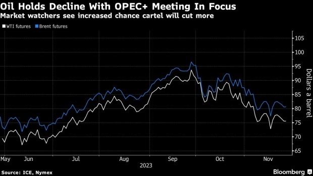 智通财经获悉,国际油价在连续三天下跌后企稳,有迹象表明,欧佩克+可能在周四举行推迟的会议时进一步减产。布伦特原油接近81美元/桶,过去三个交易日下跌2.3%,而WTI原油跌破76美元/桶。沙特和俄罗斯仍预计将在周四延长100多万桶/天的减产措施,但现在越来越多的人认为,该组织将公布收紧石油市场的措施。
