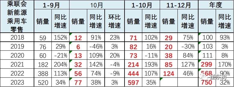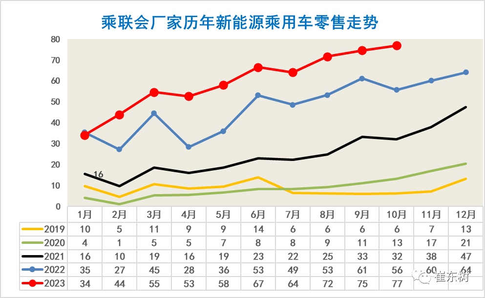 10月新能源车市场零售77万辆,同比增长38%,环比增长3%。