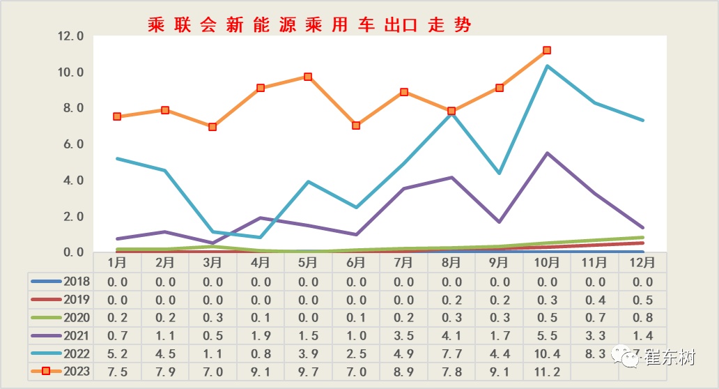 10月新能源乘用车出口11.2万辆,同比增长8%,环比9月增长23%,占乘用车出口28.6%,这在特斯拉季度末出口偏低的情况下是很不错的。中国制造新能源产品品牌越来越多地走出国门,由于海外认可度持续提升以及服务网络的完善,主要面向发达国家市场,因此市场前景向好。
