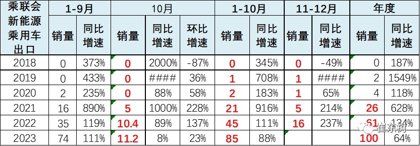 1-10月累计出口85万台,同比增0.9倍。从自主出口的海外市场零售数据监控看,上汽等自主品牌在欧洲表现较强。除了传统出口车企的靓丽表现,近期新势力出口也逐步启动,海外市场也有数据开始显现。10月的低基数对出口促进加大,未来几个月全年新能源汽车出口预计仍较高增长。
