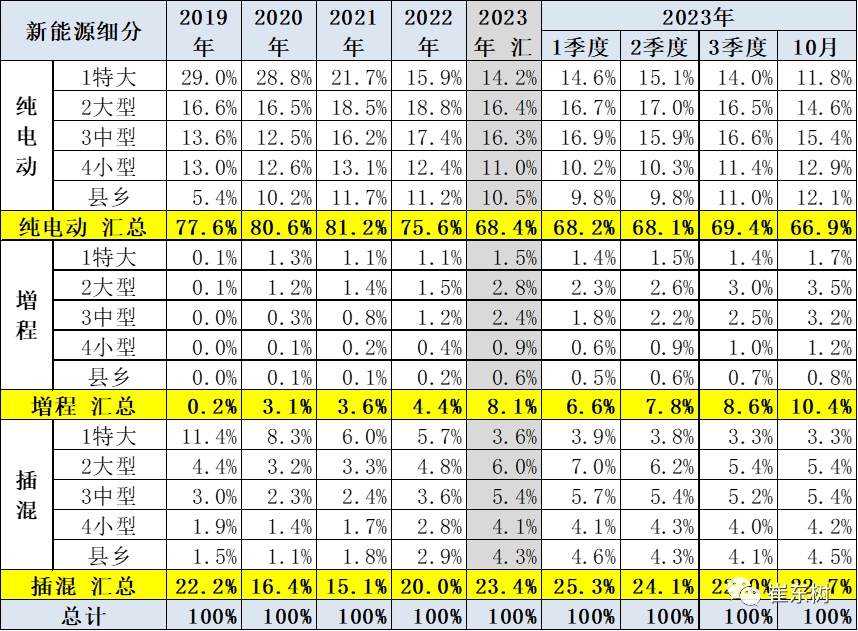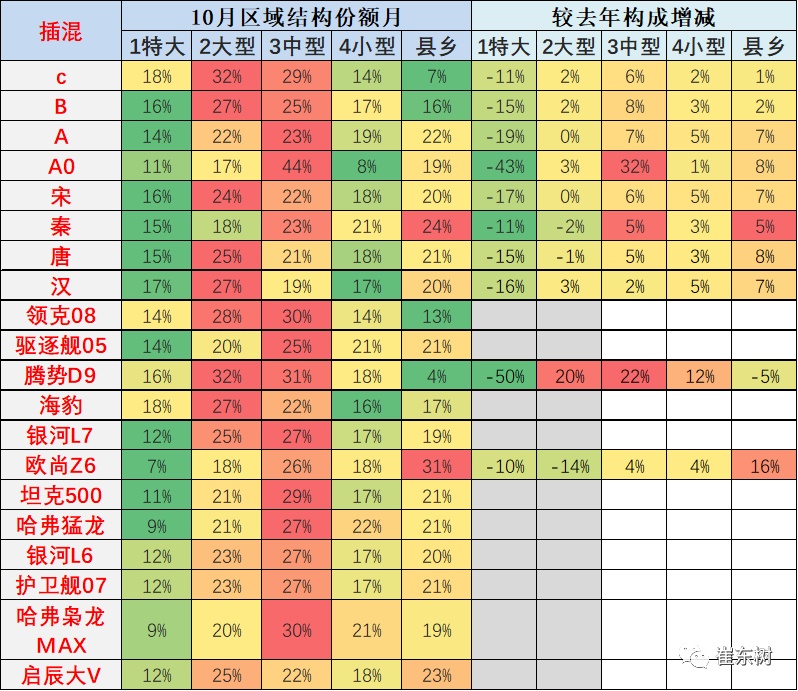 10月插混走强,大中型非限购城市仍是插混主力,限购城市需求占比下降,县乡市场的插混形成较好的推动。