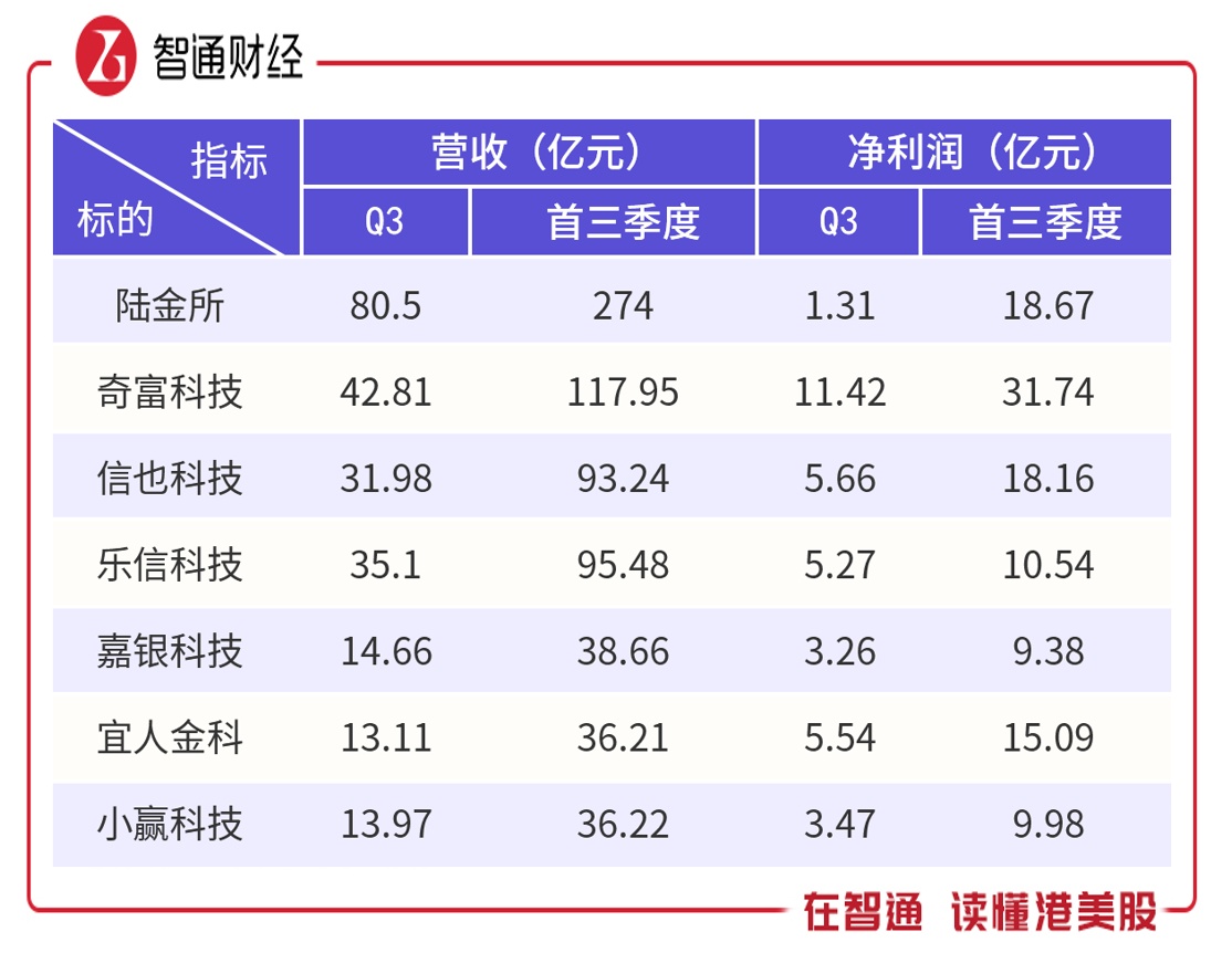 以陆金所、奇富科技、信也科技、乐信科技、嘉银科技、宜人金科以及小赢科技7家平台作为参照,看看今年Q3及前三季度的业绩表现如何?