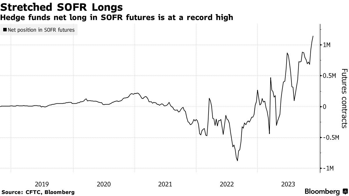 美国商品期货交易委员会(CFTC)周一公布的最新期货仓位数据显示,对冲基金上周将SOFR期货的净多头推高至纪录新高。