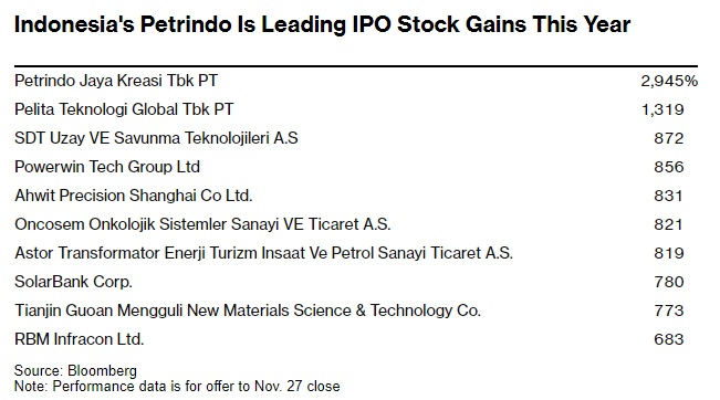 今年以来,印尼是全球IPO最活跃的市场之一,这在一定程度上得益于对可再生能源股的旺盛需求。尤其是Petrindo,该股是今年出现异常上涨和剧烈波动的一批印尼股票之一,这些股票的上涨为其投资者带来了巨大的财富,但同时也招致了监管机构的审查。