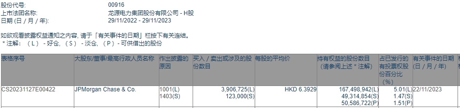 智通财经APP获悉,香港联交所最新资料显示,11月22日,小摩增持龙源电力(00916)390.6725万股,每股作价6.3929港元,总金额约为2497.53万港元。增持后最新持股数目约为1.67亿股,最新持股比例为5.01%。