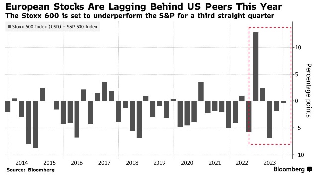 最新的评论强化了欧洲股市将在2024年继续落后于美国股市的观点。
