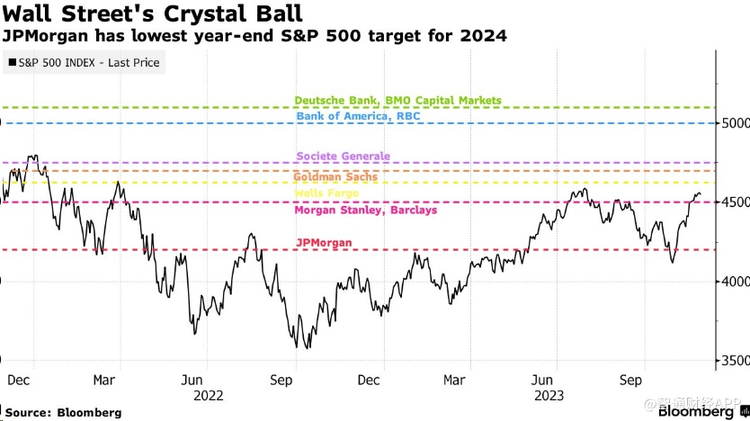 摩根大通设定华尔街最悲观的2024年标普500指数年终目标