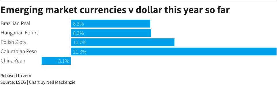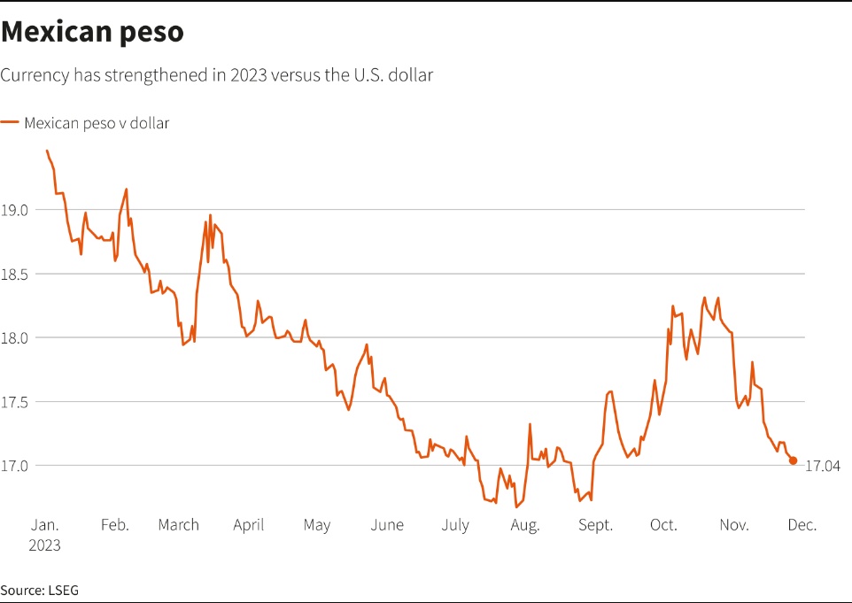 这些趋势可能会导致墨西哥比索走强,今年以来,墨西哥比索兑美元汇率上涨了约13%。