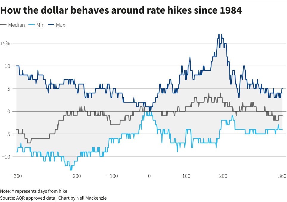 Fader对美元持“建设性”态度,他表示,在过去40年里,美元在最后一次加息后的几个月里往往趋于稳定或略微走强。