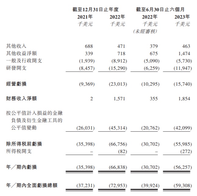 财务方面,于2021年度、2022年度、2023年截至6月30日止六个月,拨康视云研发开支分别约为845.7万美元、1529万美元、1194.7万美元;同期,公司亏损分别约为3539.8万美元、6683.8万美元、5625.7万美元。