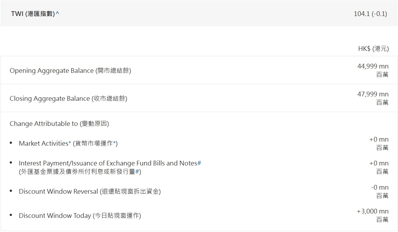 智通财经APP获悉,据香港金管局公布数据显示,11月30日通过贴现窗口向银行提供30亿元港流动性,为自8月24日以来最大金额。此前,香港金管局上一次通过贴现窗向银行提供流动性是在11月22日,当日提供了9.04亿港元流动性。