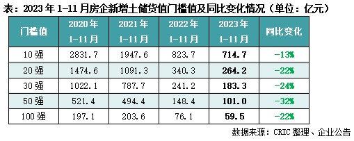 新增货值百强门槛同比降22% 拿地金额同比下降13%