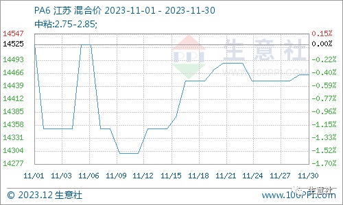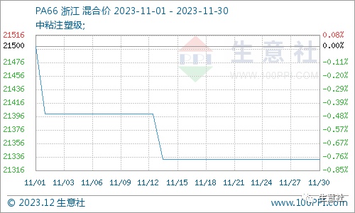 十一月份国内PA66市场走势表现为窄幅回吐前期涨幅,整月总体来看各品牌现货价格守稳为主。月内生产线开工率鲜有