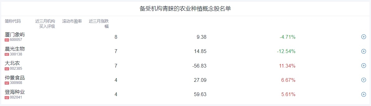 腾讯自选股为您梳理了近期备受机构青睐的农业种植概念股名单,供您参考。其中,晨光生物、大北农、登海种业等股备受机构青睐。