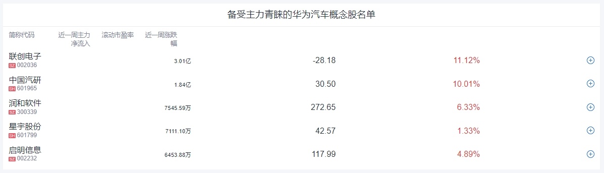 自选哥为您梳理了近日备受主力资金青睐的华为汽车概念股名单,供您参考。其中,联创电子近一周获主力净流入超3亿元;此外,中国汽研、润和软件等股亦备受主力青睐。