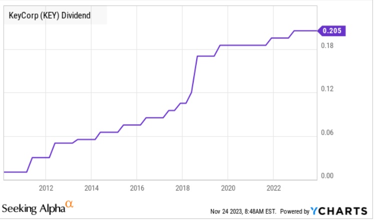 自2010年以来,KEY普通股的年度股息支付一直在增长,目前的股息收益率约为6.2%,派息比例则高达66%。