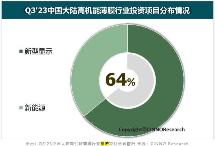 智通财经APP获悉,12月5日,根据CINNO Research产业统计数据,受新型显示、新能源等下游产业行情影响,Q3’23中国大陆高机能薄膜产业投资金额环比出现显著下滑,其中新型显示用高机能薄膜产业投资金额占比约64%,新能源用高机能薄膜产业投资金额占比约36%。CINNO Research表示,长期来看,尽管当前高机能薄膜产业投资遇冷,行业盈利能力亦短期承压,但业内主流厂商的营收规模正在逐步修复,高机能薄膜仍将长期、深度参与新型显示及新能源等全球经济增长重要板块的持续发展并提供关键支撑。