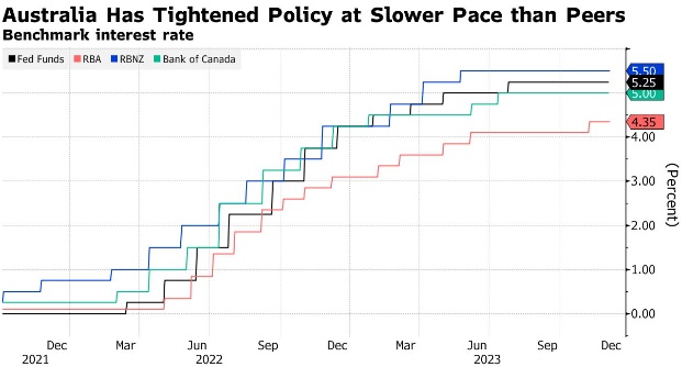 事实证明,在当前的行动中,澳洲联储是一个谨慎的加息者,即使服务价格上涨意味着核心通胀仍然居高不下。澳洲联储在当前紧缩周期的加息幅度为4.25个百分点,比美联储和新西兰联储低1个百分点。不过,市场预期美联储明年将降息,而市场仍押注澳洲联储将收紧政策。澳洲联储下次会议将于2月6日举行,届时将有机会看到今年最后三个月的通胀数据。