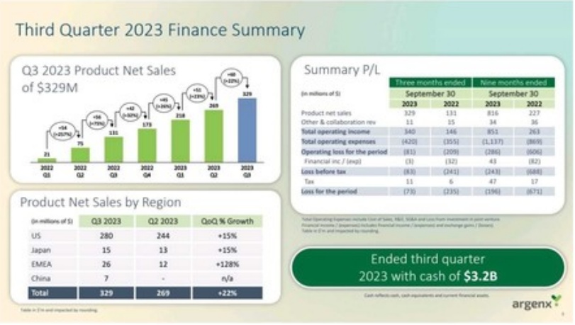 其中,Argenx 的 是全球首款 FcRn 抑制剂,也是首个获批的通过内源性减少致病性抗体而专门治疗全身型 MG 的疗法。该产品上市首年即实现 4 亿美元的销售额,并在今年Q3单季收入达到3.29亿美元,并在大中华区上市一个月内销售收入达到700万美元。照此速度,市场预测艾加莫德将轻松迈入10亿美元俱乐部。