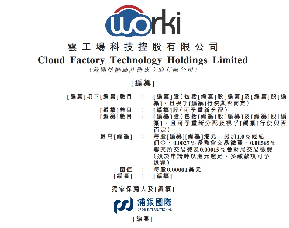 智通财经APP获悉,据港交所12月5日披露,云工场科技控股有限公司第二次向港交所主板提交上市申请,浦银国际为独家保荐人。据悉,公司曾于2023年5月31日首次向港交所递交上市申请。