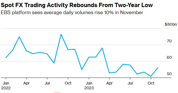 11月,CME的EBS平台上的外汇交易活动从两年低点反弹,但仍处于历史低位,交易量同比下降17%。相比之下,对CME外汇期货和期权的需求保持弹性,11月份日均合约量同比增长2%。Houston表示,此次推出新平台标志着CME继2018年收购EBS后,将其外汇产品重组为一个单一部门的关键一步。
