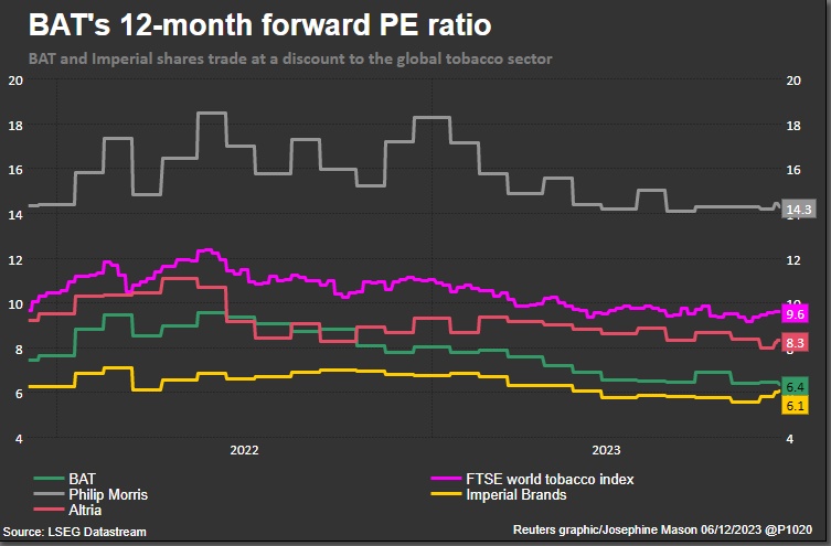 英美烟草面临的挑战使其股票的市盈率远远低于其主要竞争对手,这意味着该公司的股价迄今为止没有从转型承诺中获得多少价值。该公司的市盈率仅略高于帝国烟草(IMBBY.US),后者近年来撤回了对新产品的大量投资、并重新专注于传统的卷烟业务,这令投资者质疑其长期可持续性。