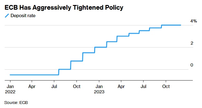 拉加德及其同事们目前已进入政策会议前的噤声期。他们目前正权衡宁愿冒险犯哪个错误,是过早降息让通胀重新加速、还是因过度紧缩而导致经济衰退。欧洲央行政策制定者面临的困境让人想起了2021年12月,当时美联储转向鹰派立场,投资者随即开始押注欧洲央行将跟随美联储加息,但后者在预测数据显示通胀加速的情况下却迟迟没有采取行动,直到7个月后才开始加息。多数观察人士认为,欧洲央行的举动落后于曲线。