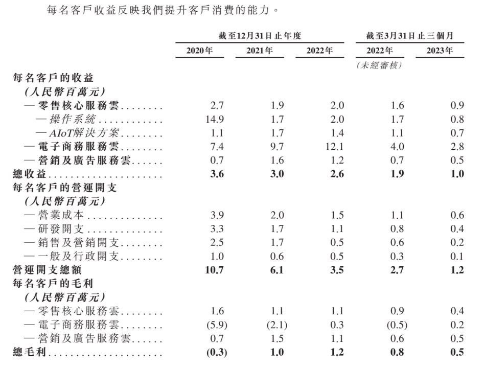 据公司招股书显示,相较于每名客户的收益,公司每名客户的营运开支超标严重。其中,从数据变化来看,通过降本增效,多点数智每名客户的营运开支实际上正逐年减少。