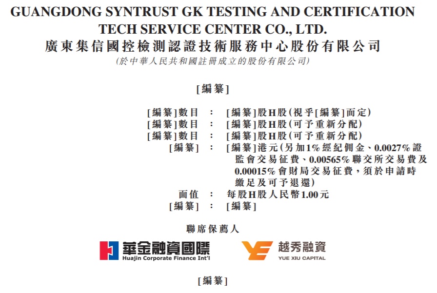 智通财经APP获悉,据港交所12月8日披露,广东集信国控检测认证技术服务中心股份有限公司(简称:集信国控检测)向港交所创业板提交上市申请书,华金融资国际和越秀融资为联席保荐人。